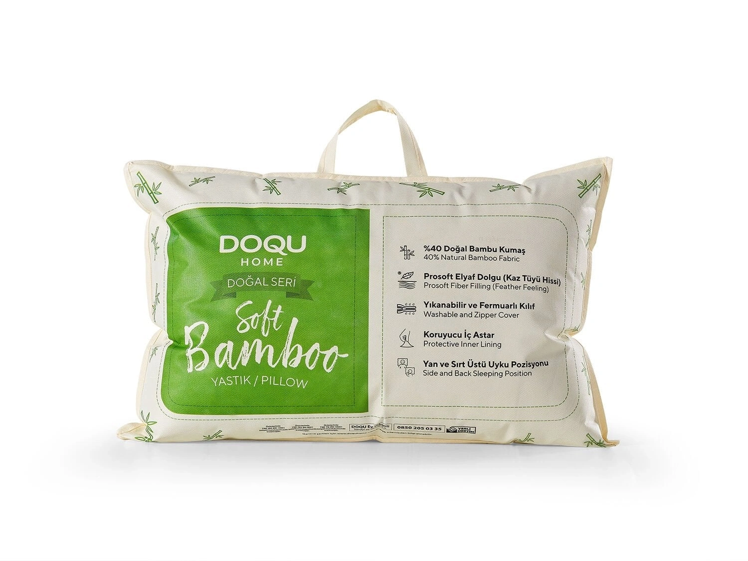%40 doğal bambu kumaşı ve kaz tüyü hissi veren Prosoft elyaf dolgusu ile sağlıklı ve konforlu bir uyku sunar. Koruyucu iç astarı ve yıkanabilir kılıfıyla hijyenik kullanım sağlar.