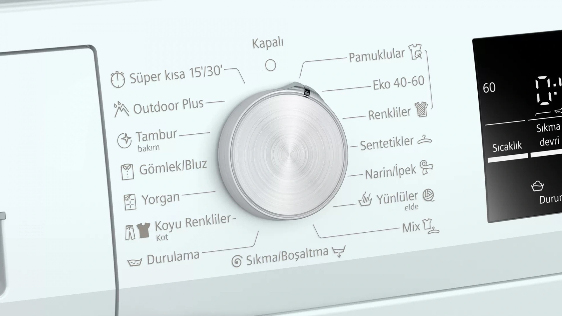 Programlar : Beyazlar/renkliler programı, Hassas programı, Sentetikler programı, Yünlüler elde yıkama programı