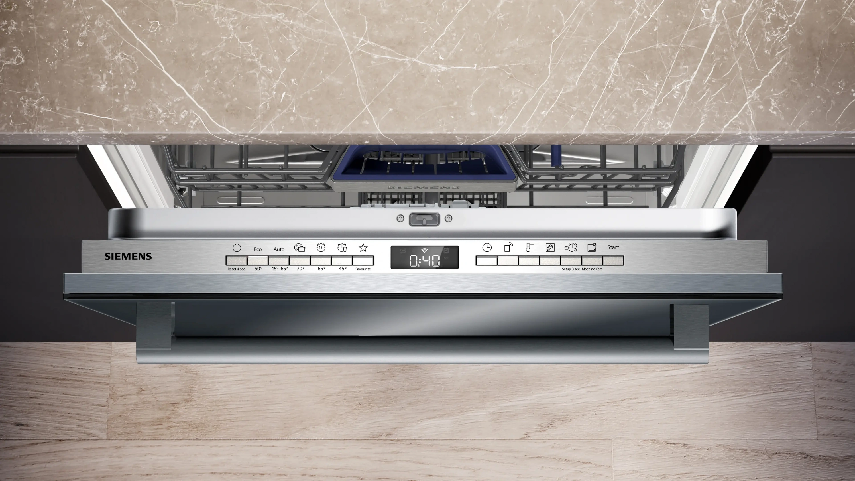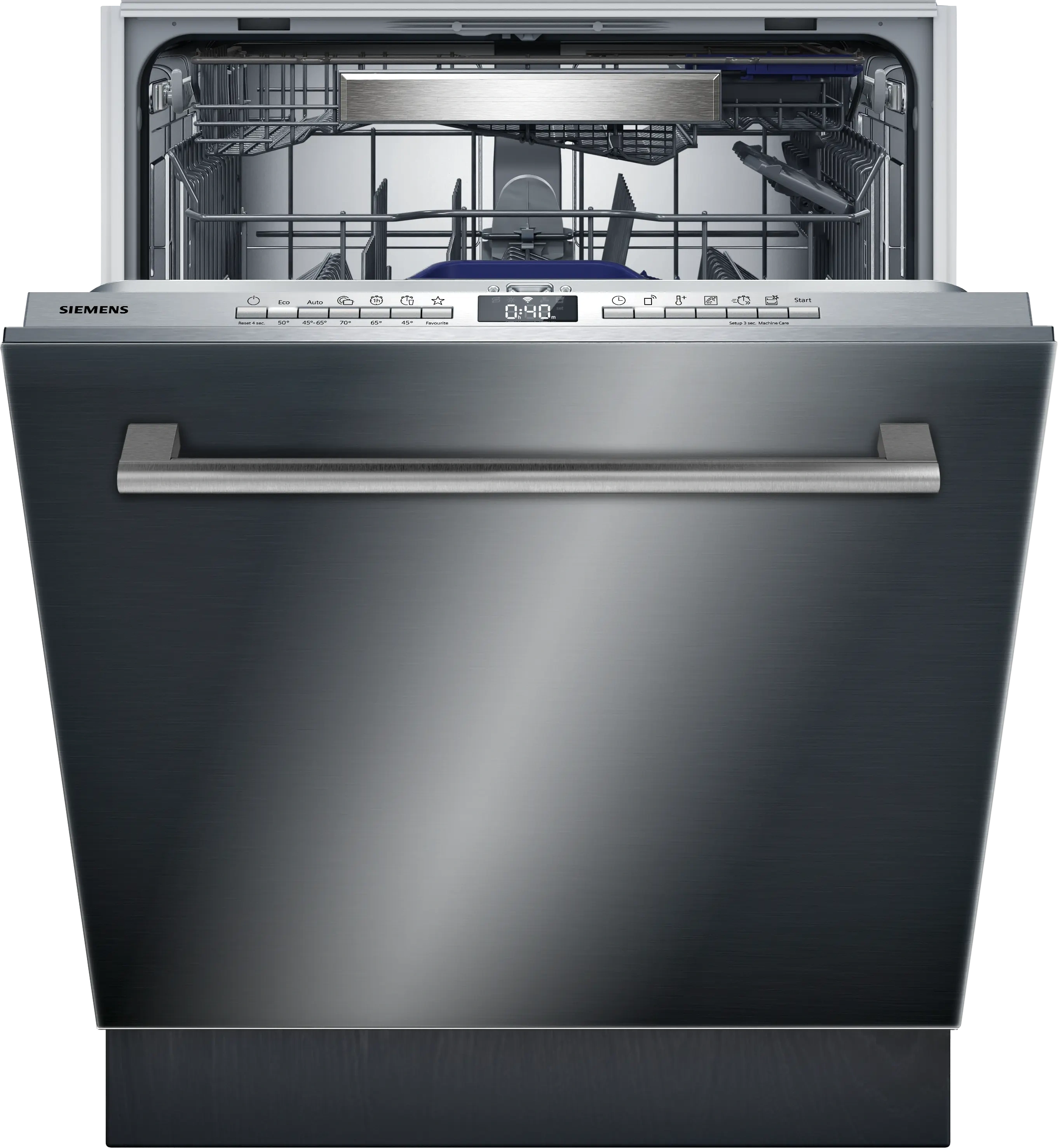 Siemens iQ500 SN45EB01NT 6 Programlı Bulaşık Makinesi, ankastre kullanım tipine sahip olup 13 kişilik geniş kapasitesiyle kalabalık aileler için ideal bir çözümdür. 6 farklı yıkama programı sayesinde farklı kir seviyelerine uygun esnek kullanım sunar.